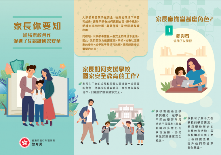 教育局就家長對《香港國安法》的認識,從而協助子女了解《香港國安法》的立法背景及訊息,其重要性及意義,建立正面的價值觀,故特意製作一份單張,讓家長了解自己在支援學校國家安全教育工作上應擔當的角色。